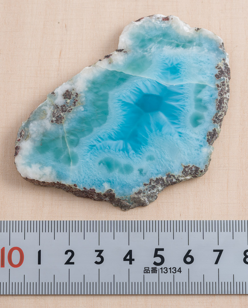 Diese einzigartige Larimar Stein Scheibe hat die Maßen von ca. 83x57x6mm.